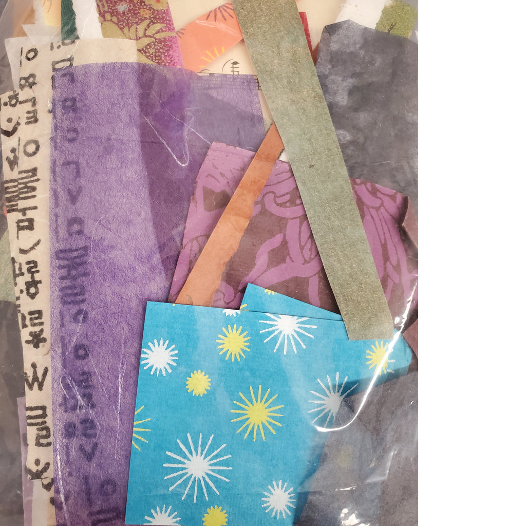 An ode to our Jane- a paper expert staff who managed the business for more than 15 years. Our paper expert "Jane" thoughtfully hand picks and fills each bag to the brim with a perfect array of decorative "drop" from our unique papers! So much inspiration and material for collage, handmade cards and more.