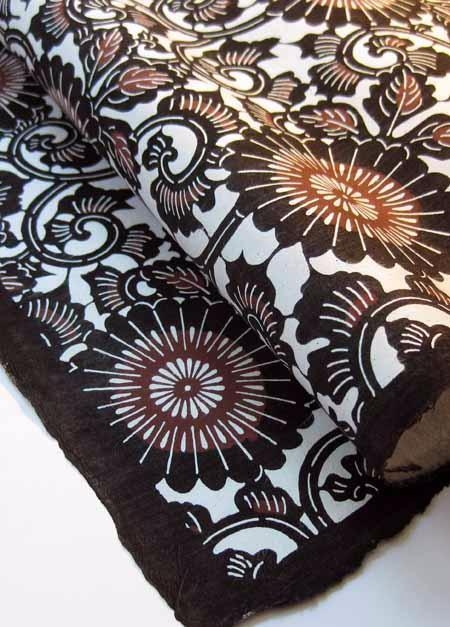 Many of the designs in our collection are based on Okinawan “Bingata” traditional designs, as well as designs reminiscent of exotic Southeast Asian batiks.