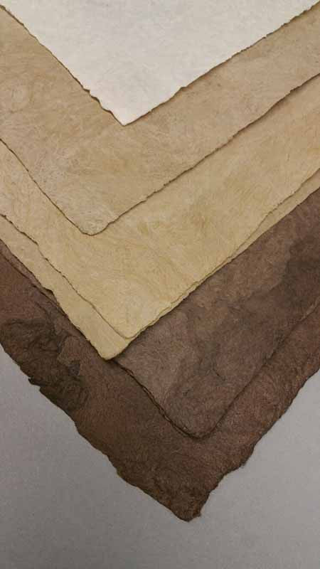 Papel Amate has been made for centuries by the Otomí Indians in the states of Puebla and Vera Cruz in Mexico. Traditional fibers still used today are the outer bark of the ficus tree and the inner bark of the mulberry bush. Our amate hails from San Pablito, Mexico, to write on, to paint on and to use sculpture-ally.