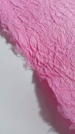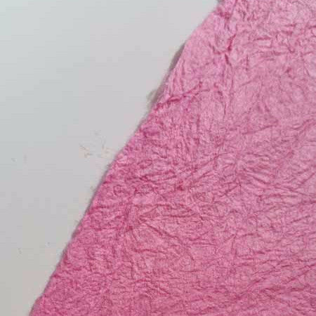 This vat-dyed kozo sheet has been treated with konnyaku (devil's root) starch making it literally "strengthened" and it is hand-crinkled. After several rounds of boiling the paper with konnyaku starch (applied like a clear paint),and drying on the line in between, the sheet becomes a fabric used in the old days for many household goods as well as clothing.